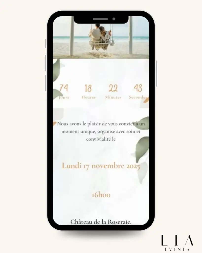 Offrez à vos invités une expérience unique avec des faire-part numériques. Créez des mini-sites web interactifs avec Lia Events.
