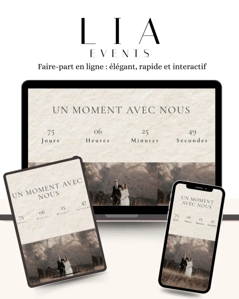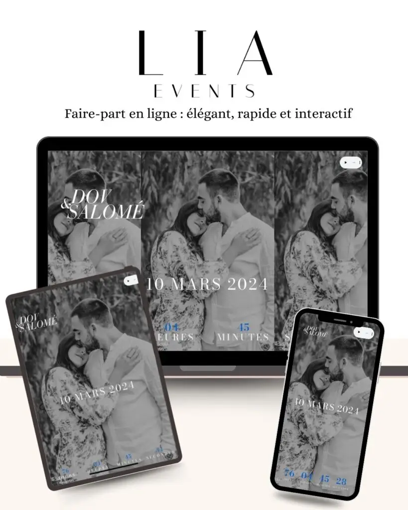 Transformez vos invitations avec des faire-part numériques uniques et interactifs. Découvrez l’avenir de vos célébrations avec Lia Events.